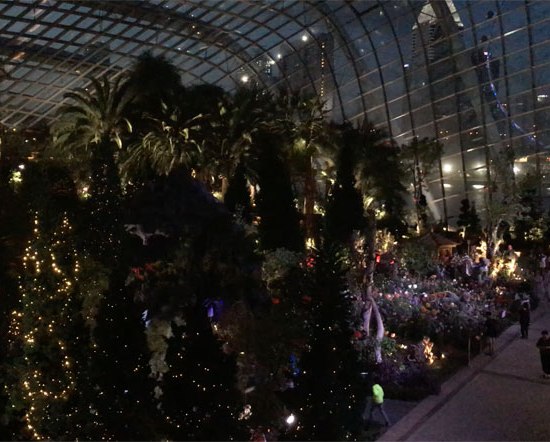 One night in Singapore, we went to Gardens by the Bay with our friends Rafael, Nicholas, Albi, and their parents. Gardens by the Bay is a place with many gardens. We were attracted to the Cloud Forest, a large glass building with a roaring waterfall in it. The waterfall was gigantic! Inside the Cloud Forest was a hollow man-made mountain with vines growing on it. It looked alive and real! Inside the mountain was an elevator that took us to different levels. There was a walkway down the mountain with many plants along the way. It was gorgeous!