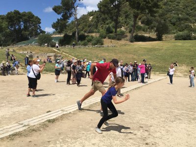 starting the race in ancient Olympian stadium