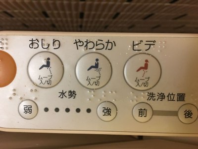 close-up of toilet buttons