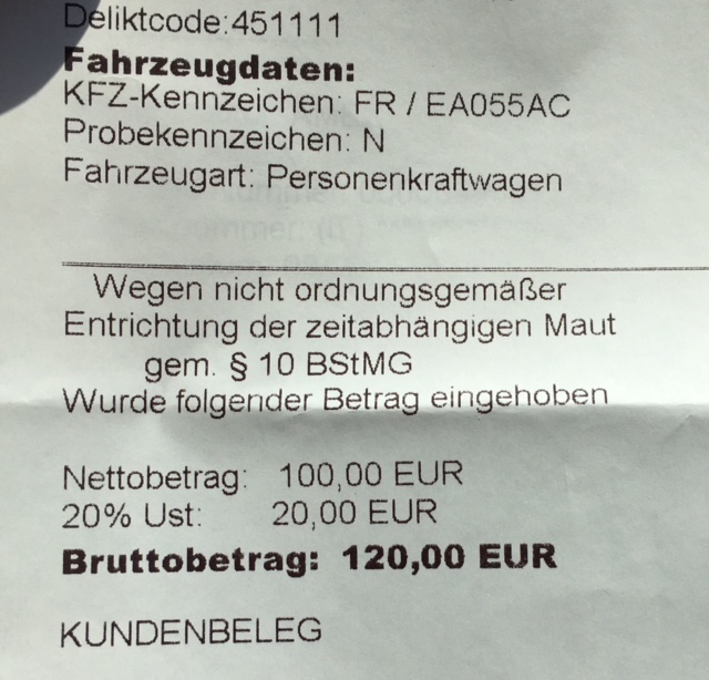 May 5, 2016May 5, 2016victoriathiessen FullSizeRender-8 May 5: Penalty for not getting Austrian toll sticker before we got to Austria 😦 Like Loading...